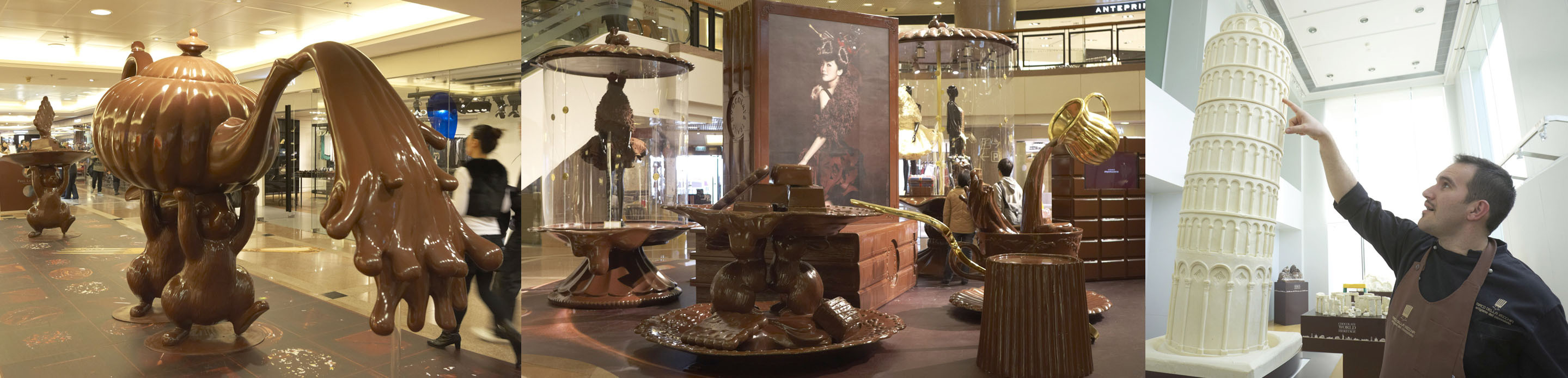 意大利朱古力大師兼吉尼斯世界紀錄保持者Mirco Della Vecchia用黑、白朱古力雕制出13件以世界遺產為藍本的藝術品,以朱古力展現出各歷史建筑的風貌,當中包括意大利比薩斜塔、埃及阿布辛貝神殿、羅馬競技場、中國萬里長城等。