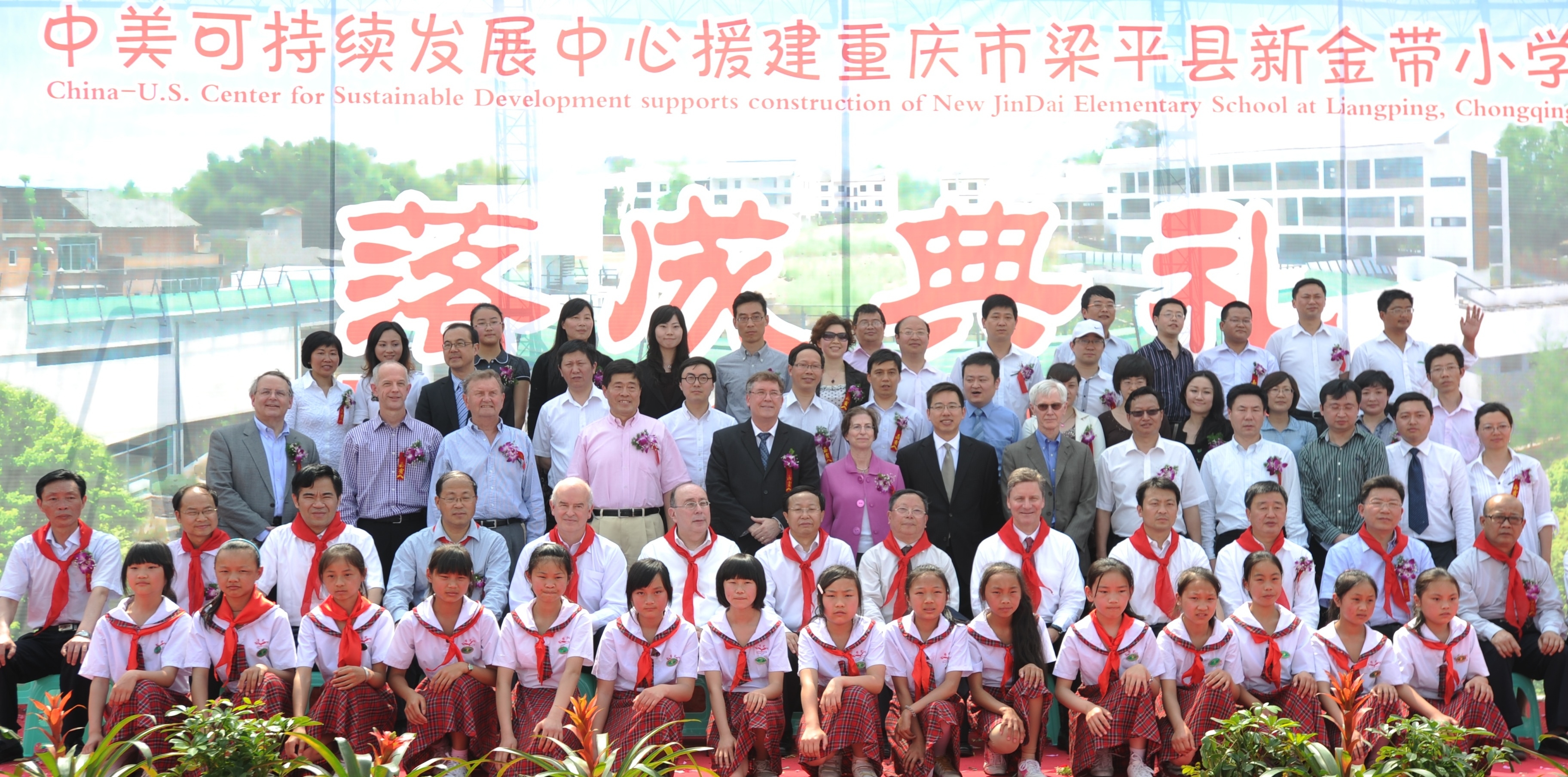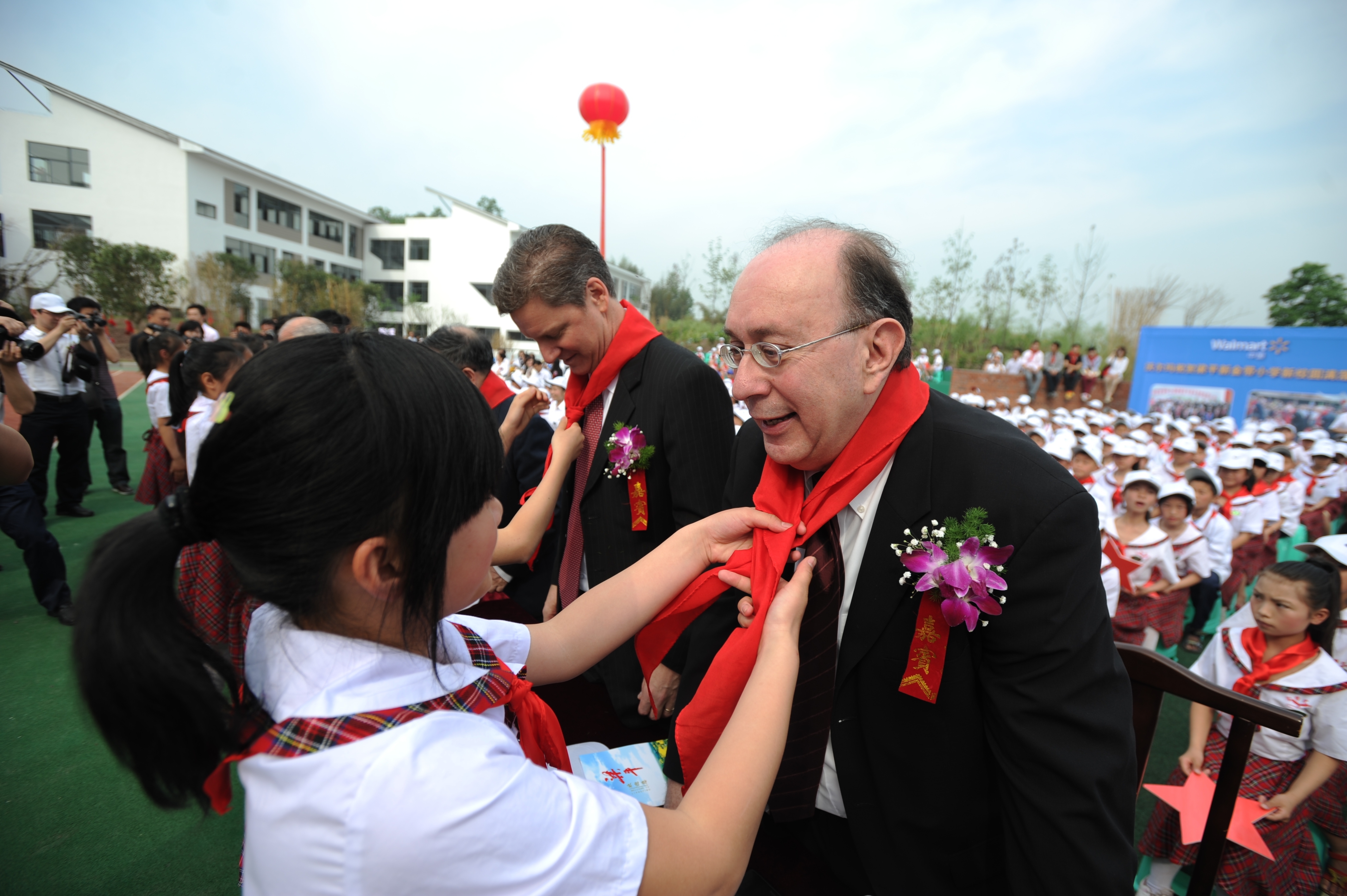 中美可持續(xù)發(fā)展中心美方理事會主席 Gary Dirks、中國21世紀(jì)議程管理中心主任郭日生、中國宋慶齡基金會基金部副部長李曉峰、中華環(huán)保基金會秘書長李偉、沃爾瑪中國公司事務(wù)副總裁傅希孟(Barry Friedman)、沃爾瑪全球采購副總裁藍柯(Ken Lanshe)、沃爾瑪公司國際部可持續(xù)發(fā)展高級總監(jiān)柯培新(Beth Keck)等嘉賓及數(shù)十名來自沃爾瑪重慶各商場的員工代表出席了新校園落成儀式。沃爾瑪還向新金帶小學(xué)捐贈了師生急需的電腦等價值萬元的學(xué)習(xí)及體育用品。