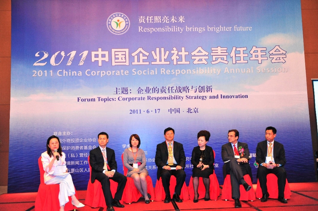 “第三屆企業(yè)社會(huì)責(zé)任年會(huì)”由中國外商投資企業(yè)協(xié)會(huì)、中國保護(hù)消費(fèi)者基金會(huì)、中國民(私)營經(jīng)濟(jì)研究會(huì)、中國環(huán)境新聞工作者協(xié)會(huì)和北京市石景山區(qū)人民政府聯(lián)合主辦,2011年6月17日在北京舉行。本次年會(huì)主題為“企業(yè)的責(zé)任戰(zhàn)略與創(chuàng)新”。當(dāng)天企業(yè)高管、政府官員、專家、國際組織及 NGO、中外主流媒體記者等各界人士匯聚一堂。為提醒全世界的企業(yè)都來重視社會(huì)責(zé)任、更好的履行社會(huì)責(zé)任,并號(hào)召更多企業(yè)參與其中,經(jīng)與會(huì)企業(yè)提議,年會(huì)組委會(huì)及與會(huì)的80家中外知名大公司還倡議從明年起,將每年的6月16日確立為世界“企業(yè)社會(huì)責(zé)任日”。