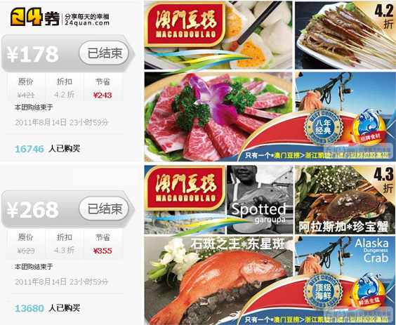 8月18日-20日,24券與澳門豆撈的聯合感恩再上線的依然是10天創下7萬單銷量的同款套餐;而喜愛澳門豆撈的客戶,將可以再次用實惠的價格享受澳門豆撈高品質的食品和服務。