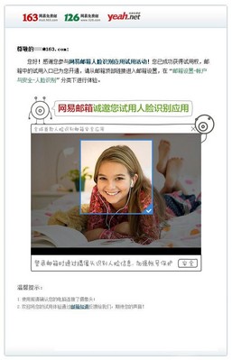除了語音輸入搜索郵件取得突破外,網易將在2012年上半年將人臉識別系統率先應用在網易郵箱等產品上,提高這些產品的安全等級,并將逐步應用到網易通行證旗下的各款產品中。在實際使用中,一個網易郵箱用戶可以選擇在異地登錄時要求人臉認證,或者短時間多次輸錯密碼被鎖定后進行人臉認證解鎖。