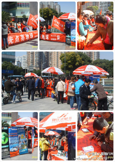 實際上,錦江之星從2009年起就已經開始參與“地球一小時”熄燈活動,這已經是第四年了。錦江之星一直倡導環保和綠色,多次舉行宣傳環保的活動,諸如“您環保,就省錢”(客人放棄使用客房衛浴6小件,就可以省10元)等活動。