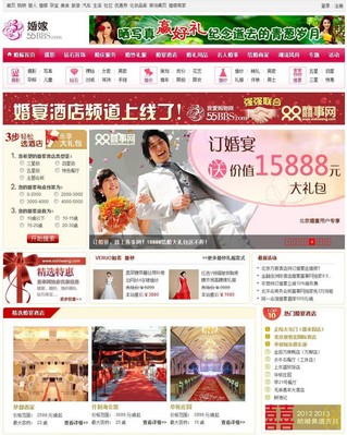 喜事網(wǎng)(www.xishiwang.com)整合婚宴酒店預訂、定制婚紗禮服、海外婚禮、海外攝影,打造國內(nèi)領先的一站式結婚服務平臺?!?012喜事網(wǎng)結婚展”一站式婚禮服務必將引領新一輪的婚嫁消費風潮。
