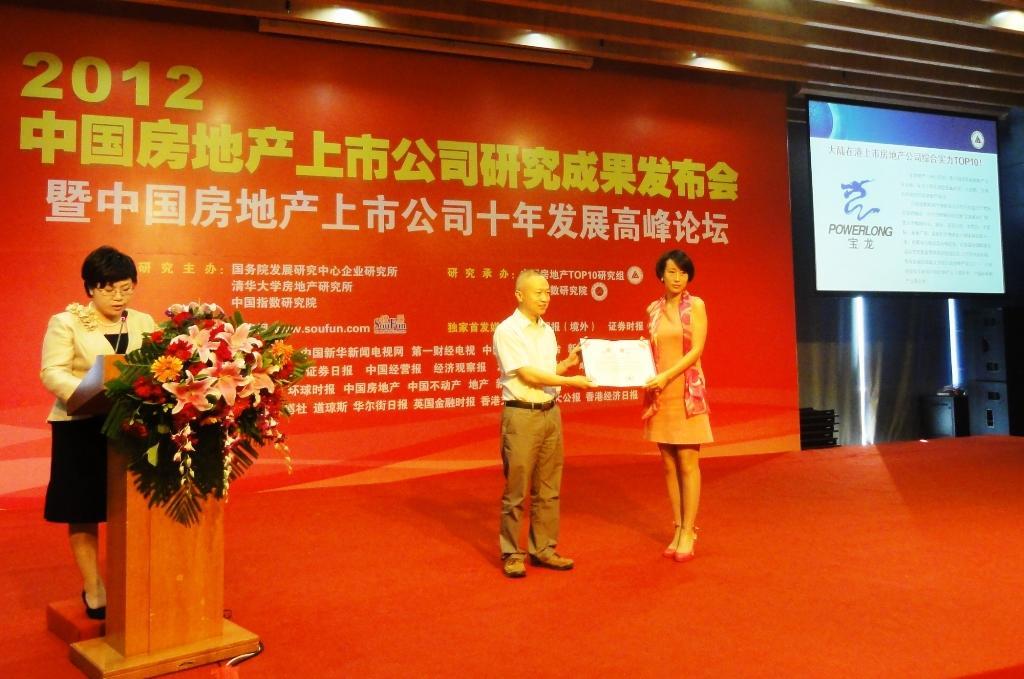 寶龍地產(HK.1238)榮獲2012中國大陸在港上市房地產公司“綜合能力TOP 10”、“財富創造能力TOP 10”、“財務穩健性TOP 10”