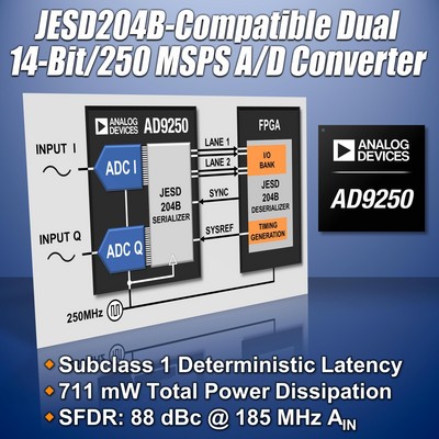 北京2012年7月13日電 /美通社亞洲/ --Analog Devices, Inc. (NASDAQ: ADI),擁有逾47年歷史的全球領先高性能信號處理解決方案供應商及數據轉換器市場份額領先者*,最近推出雙通道、高性能14位、125 MSPS模數轉換器AD9645,其總功耗比競爭解決方案低22%。除了高速、寬動態范圍、低功耗、高性價比和功能靈活等特性之外,AD9645 ADC采用5 mm × 5 mm封裝,所占面積比最有力競爭產品還節省30%。新款轉換器滿足最新的3G和4G多標準蜂窩通信基礎設施,如CDMA2000、WB-CDMA、LTE、TD-SCDMA、多載波GSM等的高性能和小尺寸要求。其他主要應用包括電池供電的手持式儀器、示波器和便攜式醫療設備。