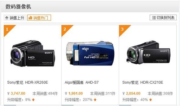 -- 攝像機(jī)S7居熱銷榜第二位