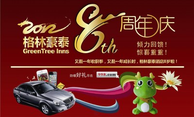 格林豪泰8周年慶百萬豪禮感恩回饋活動已接近尾聲,此次活動是為了感謝廣大客人對格林豪泰的關注與支持,而特別推出為期兩個月的抽獎活動,活動共送出百萬大獎,有iPhone4S,iPod Nano、百元話費等眾多好禮,更有價值十萬元轎車相送,活動已經進入最后倒計時,格林豪泰溫馨提示大家,請抓住最后的機會,趕快來參與,人人都有機會贏得轎車大獎。