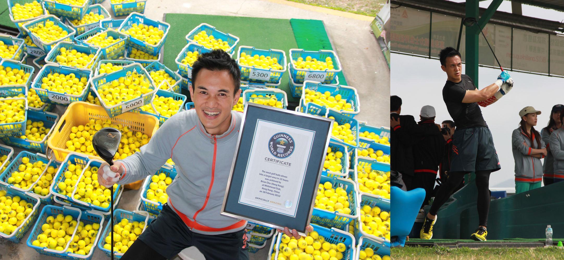 香港2013年3月12日電 /美通社/ -- 香港星級健身教練車志健 (Brian Cha)于2013年2月18日,凌晨12時至中午12時的12個小時內,在沙田馬鞍山白石俱樂部連續將9,959個高爾夫球打到100碼外。成功刷新健力士世界紀錄。