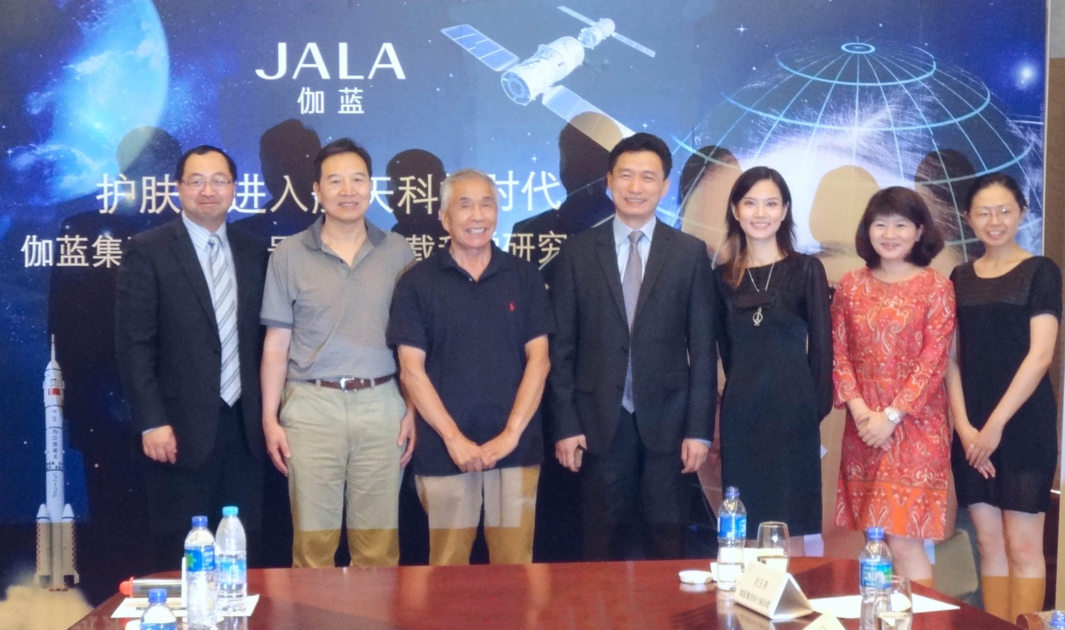 上海2013年8月9日電 /美通社/ -- 2013年8月6日,一場名為“護膚品進入航天科技時代 -- 伽藍集團航天搭載神舟十號開展生物護膚科學研究”發布會,在北京航天城龍城麗宮國際酒店成功舉行。中國空間科學學會秘書長邱里,國家空間科學專家委員會委員、中科院微生物所研究員劉志恒教授,JALA伽藍集團執行副總裁劉玉亮、伽藍集團R&D研發中心總監曹平等出席活動。會上,伽藍集團R&D研發中心消費者研究部總監黃曉青向嘉賓和記者具體介紹了此次合作項目的情況。